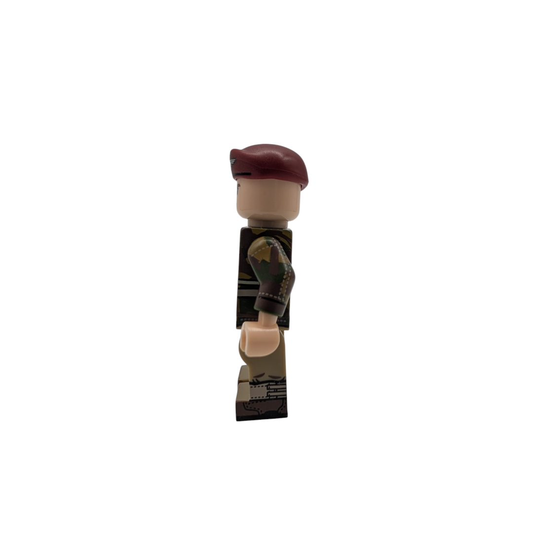 This British WW2 Parachute regiment soldier minifigure pays homage to the ordinary yet extraordinary soldiers of the Parachute Regiment, Britain’s airborne infantry founded in 1942. With a maroon beret and meticulously detailed battledress, this soldier figure brings history to life. His uniform includes webbing with ammunition pouches and camouflage smock printing, reflecting the kit carried into drops over Normandy and Arnhem.