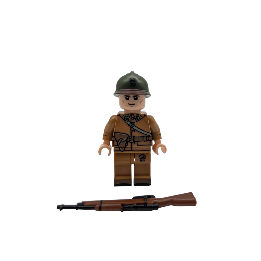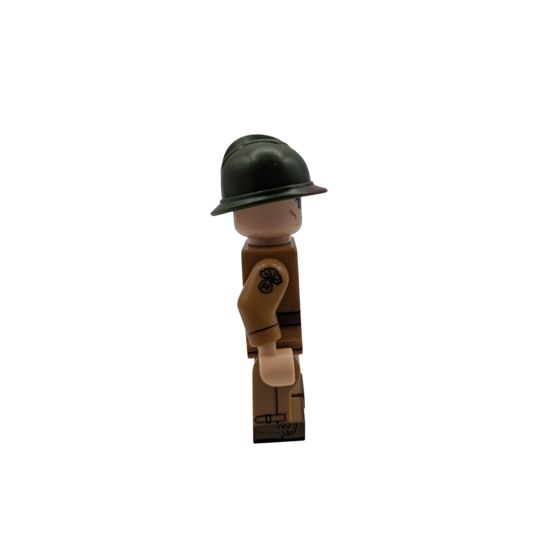 This French WW2 Dragoon infantry Regiment minifigure represents the French Dragoons—mounted infantry who transitioned into mechanized and foot roles during WW2. Wearing the Adrian helmet with unit insignia and chest bandolier printing, the figure embodies the hybrid character of the Dragoons, equally adept at mobility and infantry tactics.