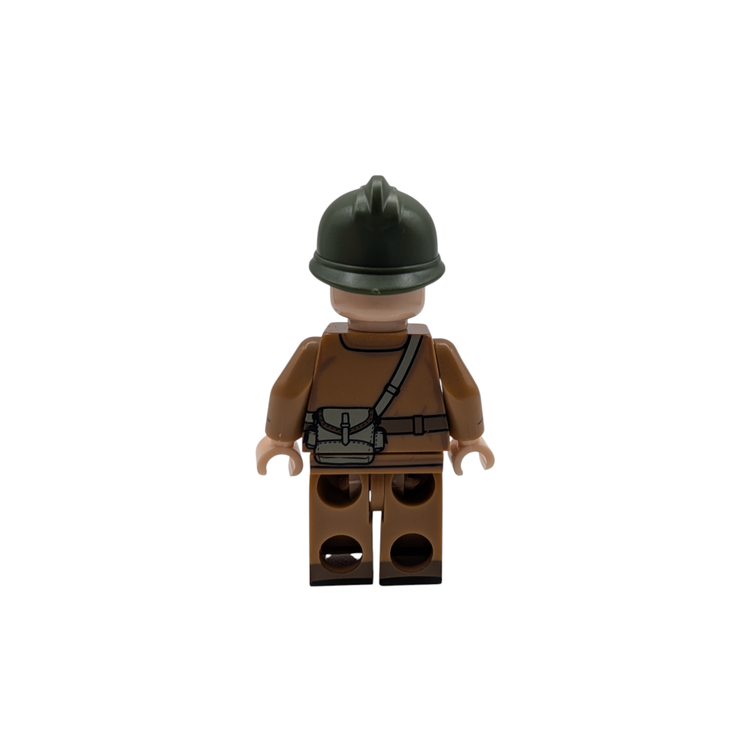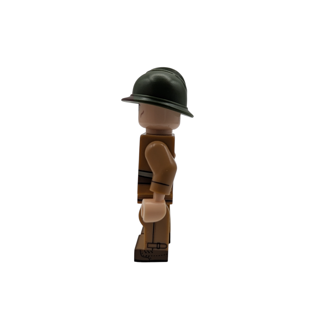 The detailed uniform, including leather straps and cartridge pouches, makes this minifigure stand out in any WW2 collection, particularly in dioramas of the French defence.