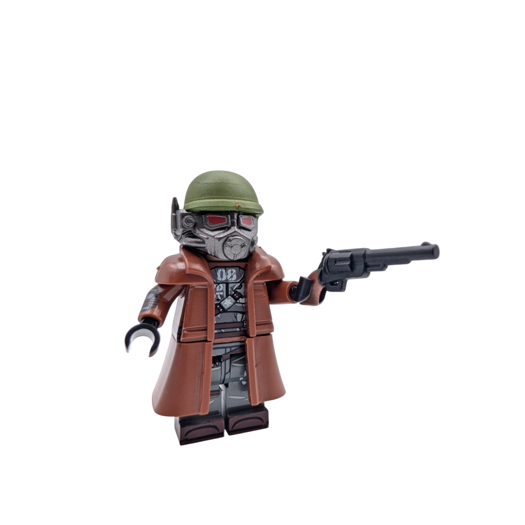 The NCR Black Ranger minifigure is a striking interpretation of one of the most enigmatic Ranger variants in Fallout lore. Distinguished by its darker armour scheme and tactical appearance, the Black Ranger carries with it an air of mystery, often associated with covert operations and intelligence gathering within the New California Republic. While the standard Elite Rangers acted as symbols of strength and deterrence, Black Rangers were rumoured to handle the “quiet wars”—missions that never made it into official NCR records.